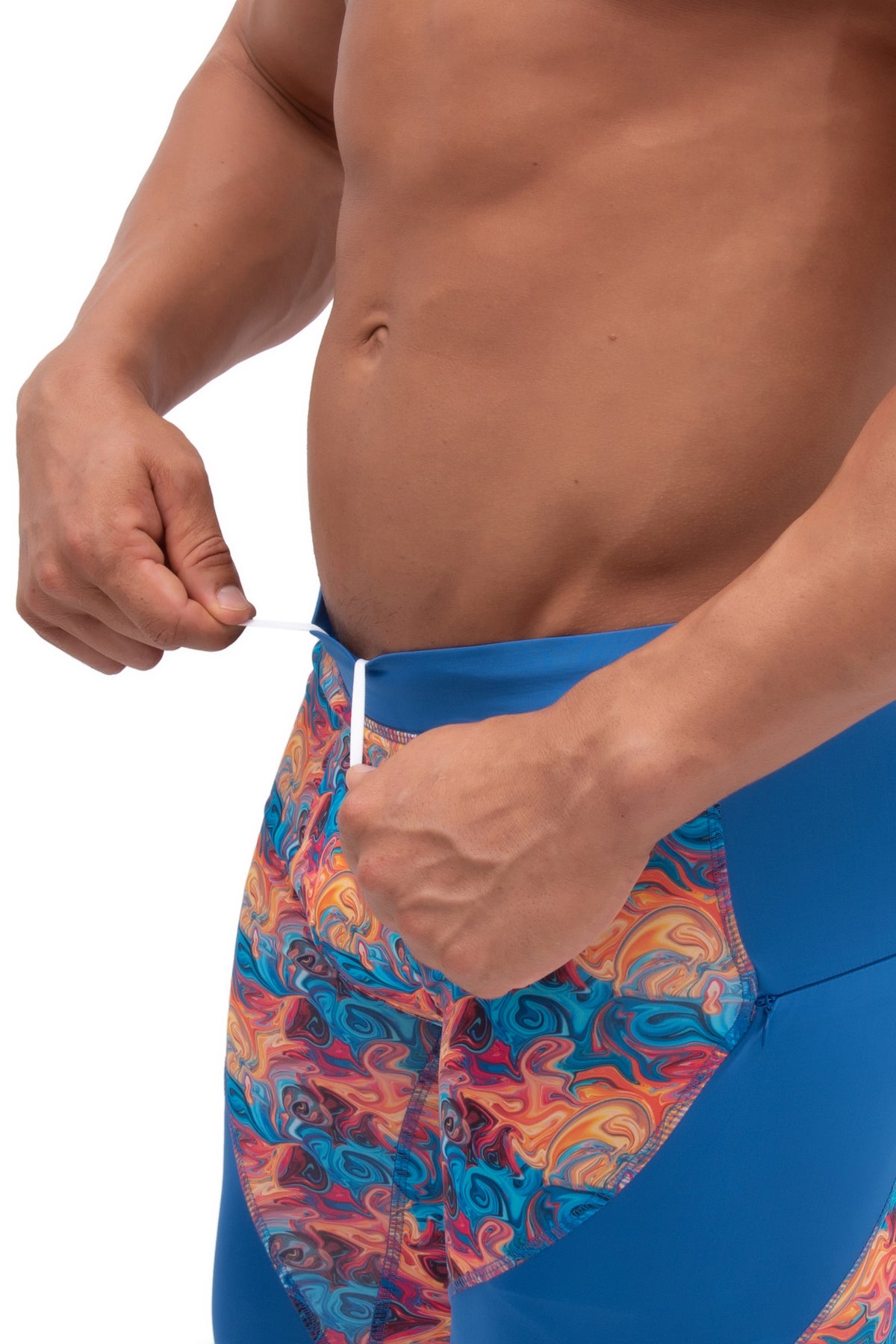 mens leggings | Blue abstract leggings for men with adjustable drawstring