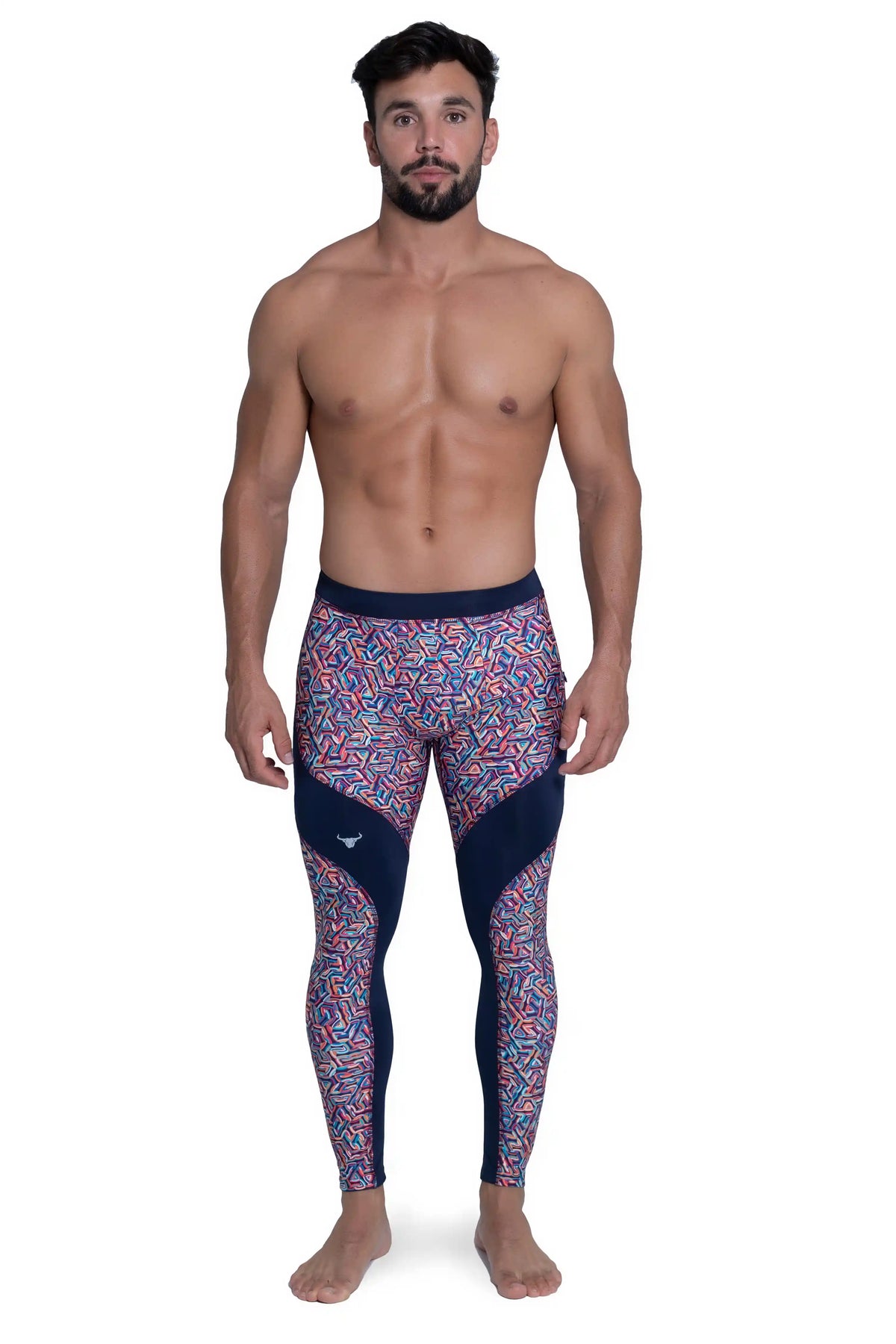 Embrace boldness with our Patterned Leggings for Men, where cutting-edge style converges with peak performance. Crafted for the modern man who dares to be different, these leggings feature a vibrant, geometric pattern that plays with perception, creating a stunning illusion effect. The kaleidoscope of colors not only catches the eye but also energizes your every move. Ideal for those who push the limits in style and sport, these leggings ensure you stand out whether you're in the gym or on the go.