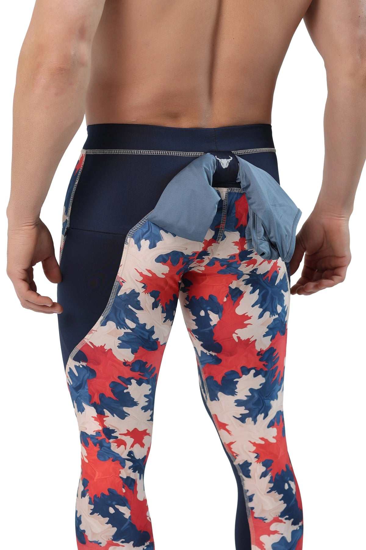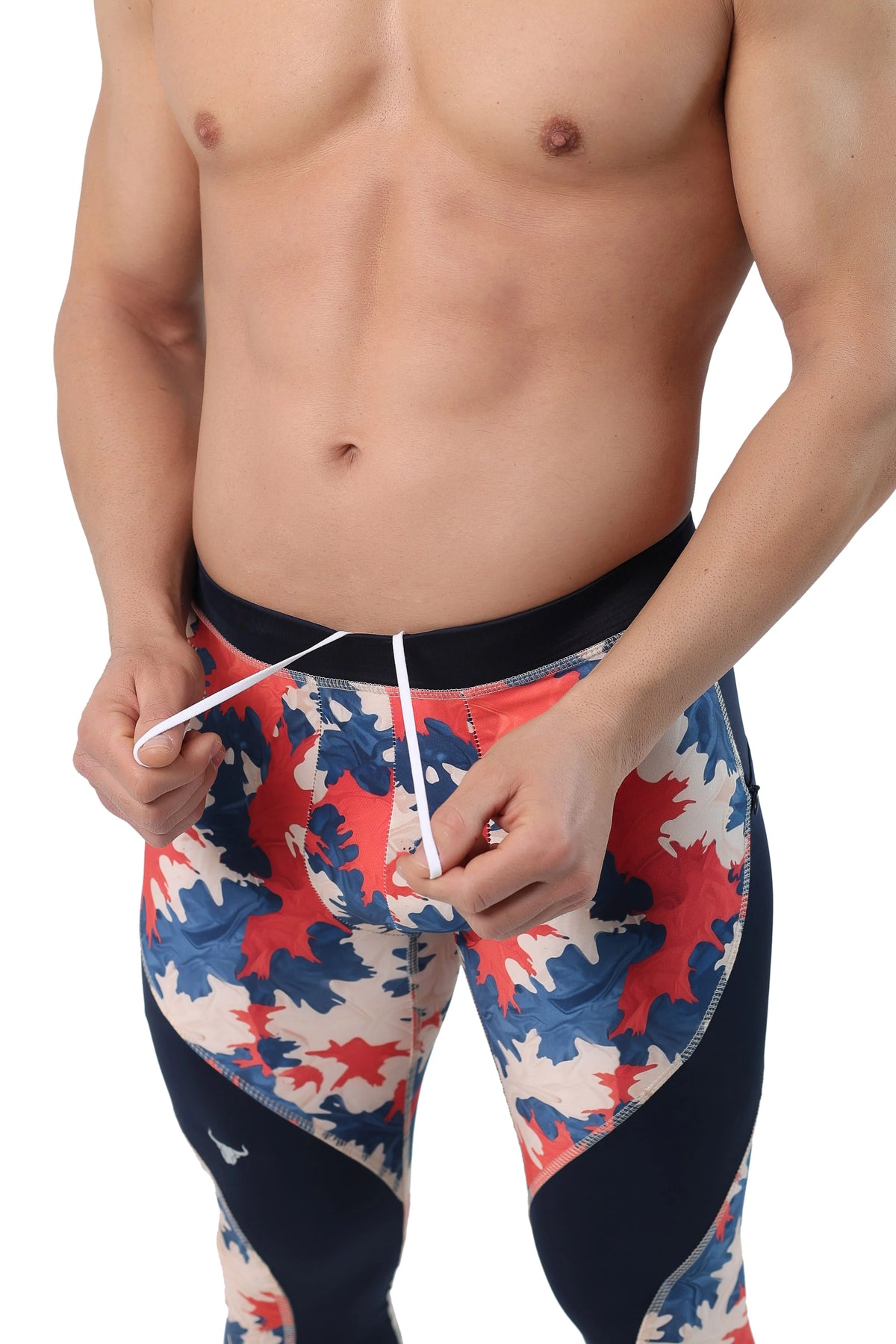 Unleash unstoppable energy in our patriotic camo leggings for men, a dynamic fusion of breathability and bold style. Engineered for intense CrossFit sessions, long-distance runs, or high-impact gym routines, these meggings feature advanced moisture-wicking technology and four-way stretch for unrestricted movement. The vibrant red, white, and blue camouflage pattern adds a fearless edge, while the built-in pocket keeps essentials close at hand. Embrace the spirit of adventure and conquer every workout with unmatched comfort and confidence.