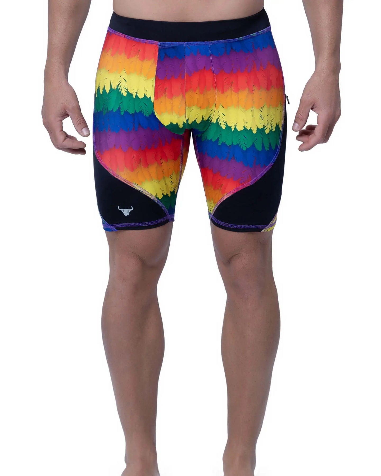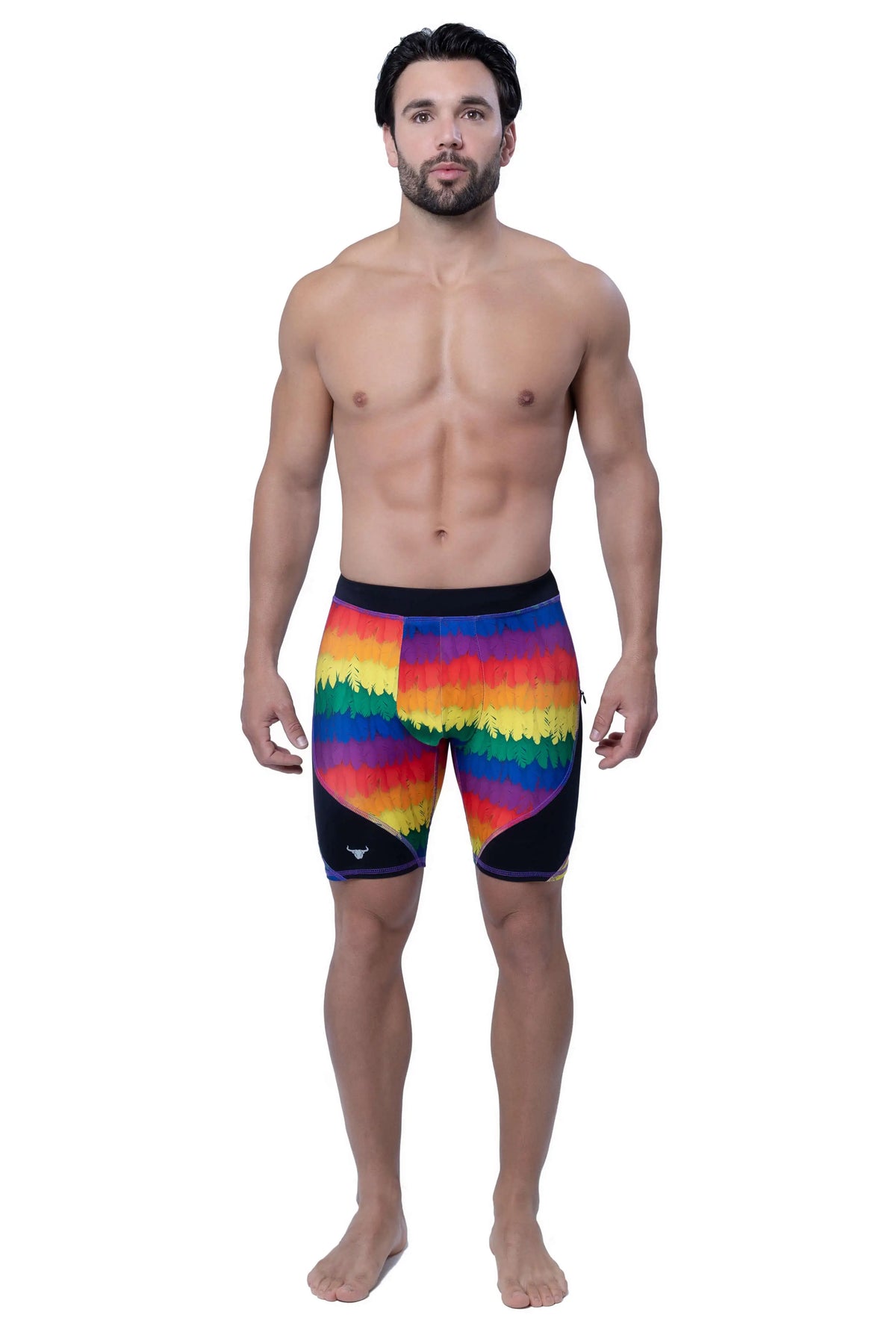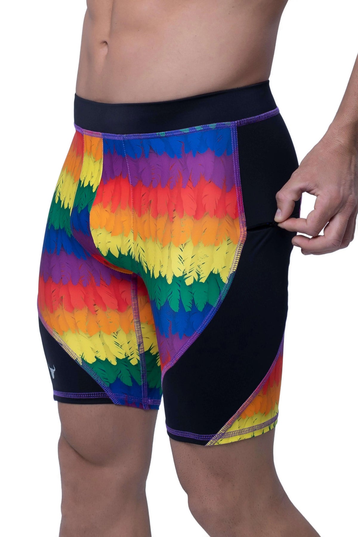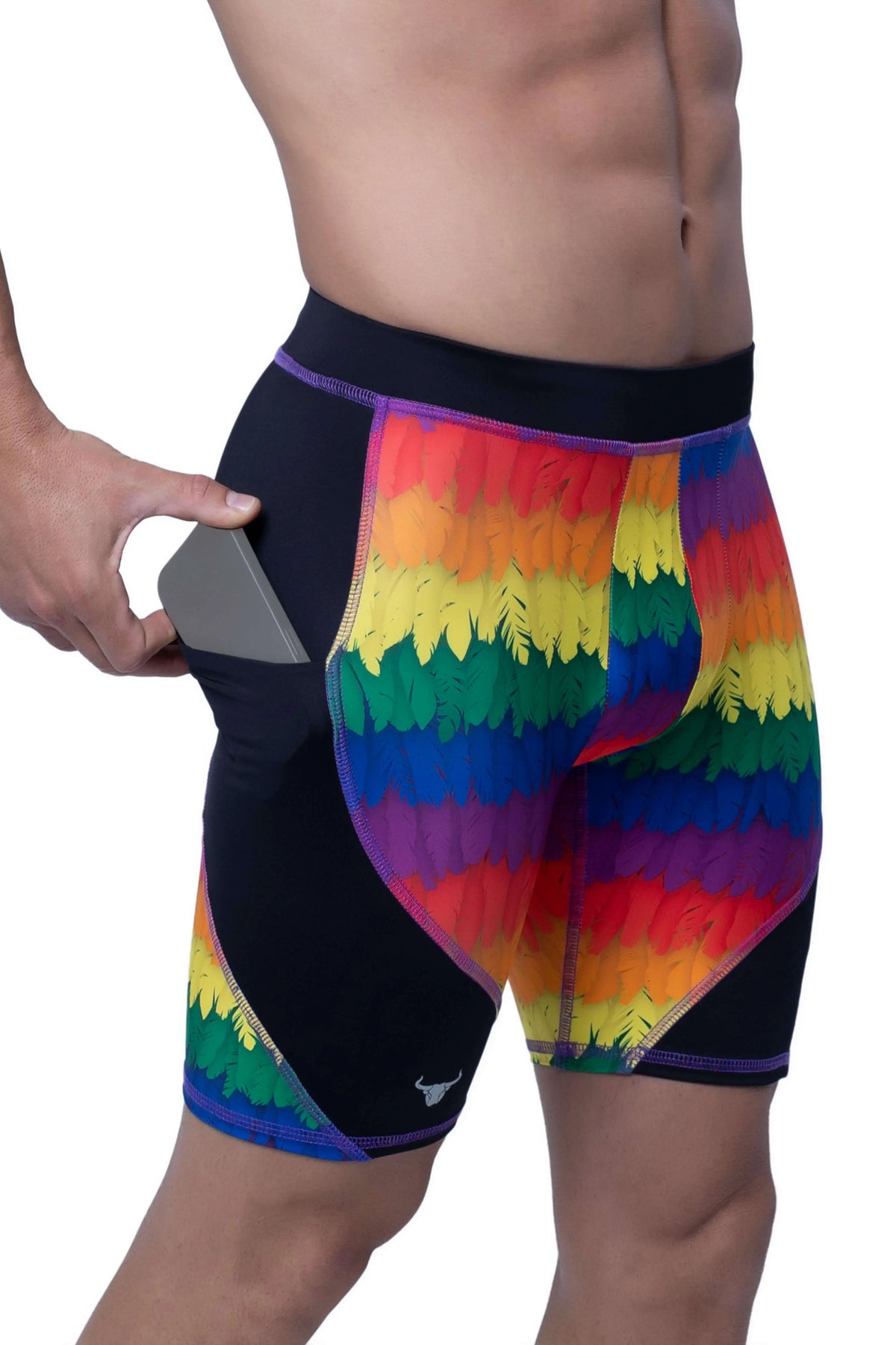 Introducing the Pride Feathers Biker Shorts for men, where a fabulously fierce explosion of colors meets athletic chic. These biker shorts feature a dazzling print that's louder than your most memorable one-night-stand, bursting with a vibrant palette that celebrates love and pride. Crafted for both comfort and style, they're perfect for anyone ready to sashay and shantay across any scene. Embrace the joy and opulence as you flaunt these shorts at the gym, on a ride, or during a festive parade. Radiate confidence and show off your pride in every stride!